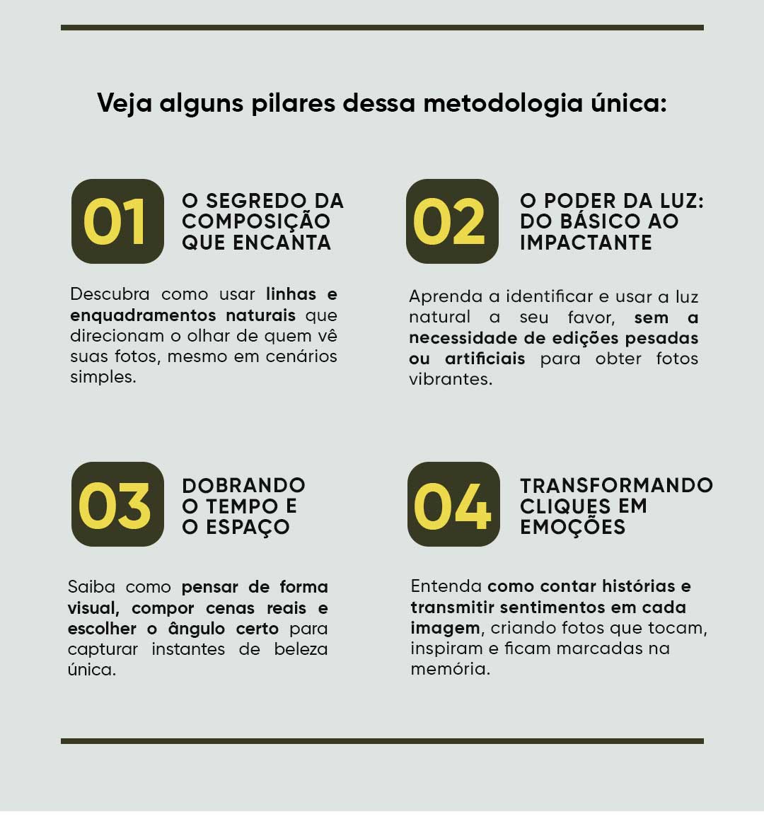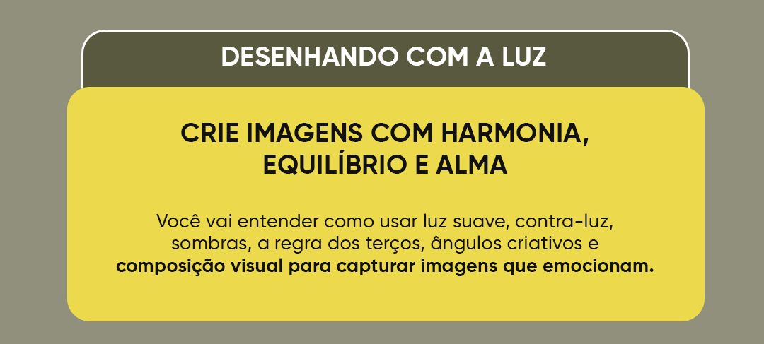 Sim! O curso é totalmente acessível para quem deseja aprender a fotografar com o celular. Você aprenderá técnicas que podem ser aplicadas tanto em câmeras profissionais quanto em smartphones.
