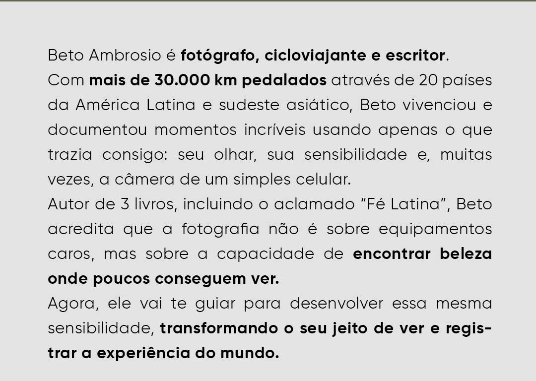 Você pode entrar em contato direto comigo pelo meu Instagram @betoambrosio_, sou eu mesmo que leio e respondo as mensagens.