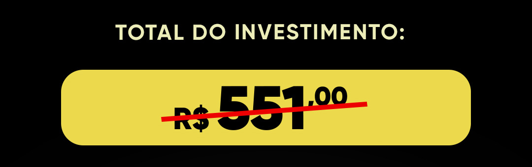 Atualmente, o curso tem 3h30 de duração. Garantindo sua vaga hoje, você receberá acesso vitalício com todas as atualizações futuras.
