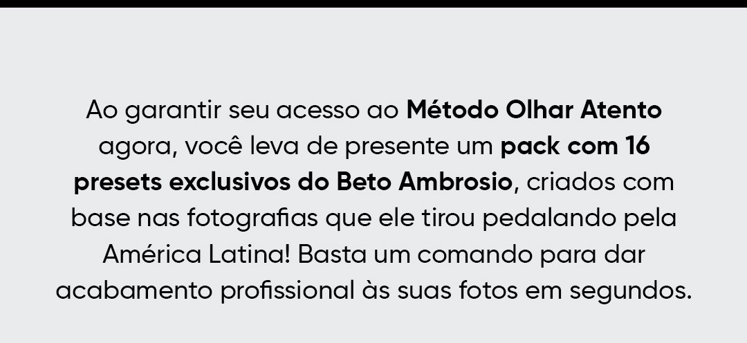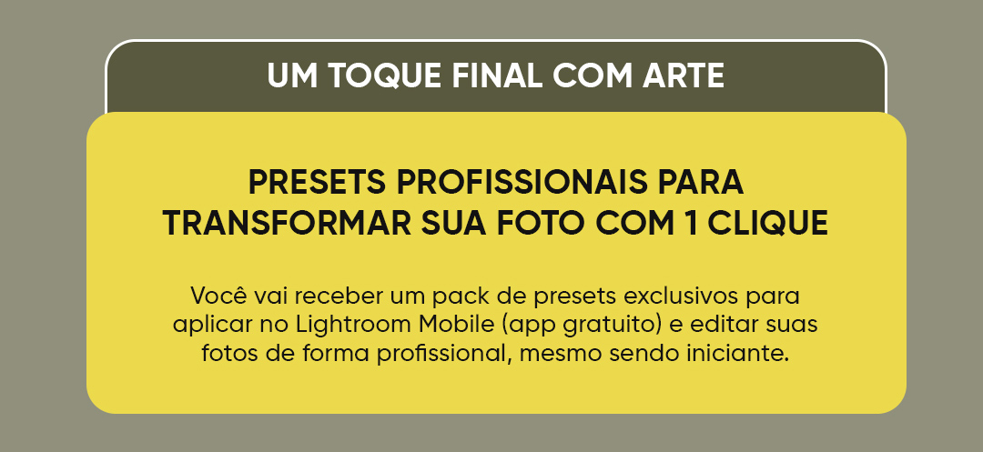 Não! Mas você pode aprender a editar suas fotos com o curso de Lightroom Mobile, com uma condição exclusiva para quem comprar o curso de fotografia. Saiba mais nos canais do Beto Ambrosio.