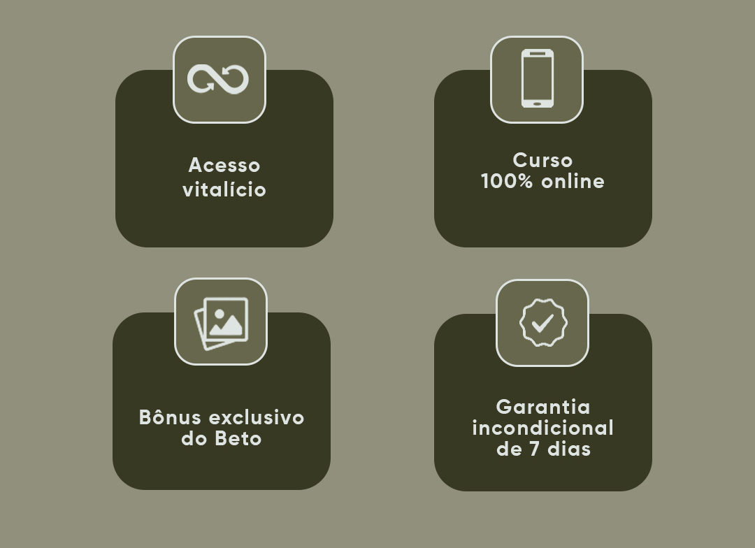 Oferecemos uma garantia de satisfação total. Se você não estiver satisfeito com o curso, tem 7 dias para solicitar o reembolso INTEGRAL do investimento.